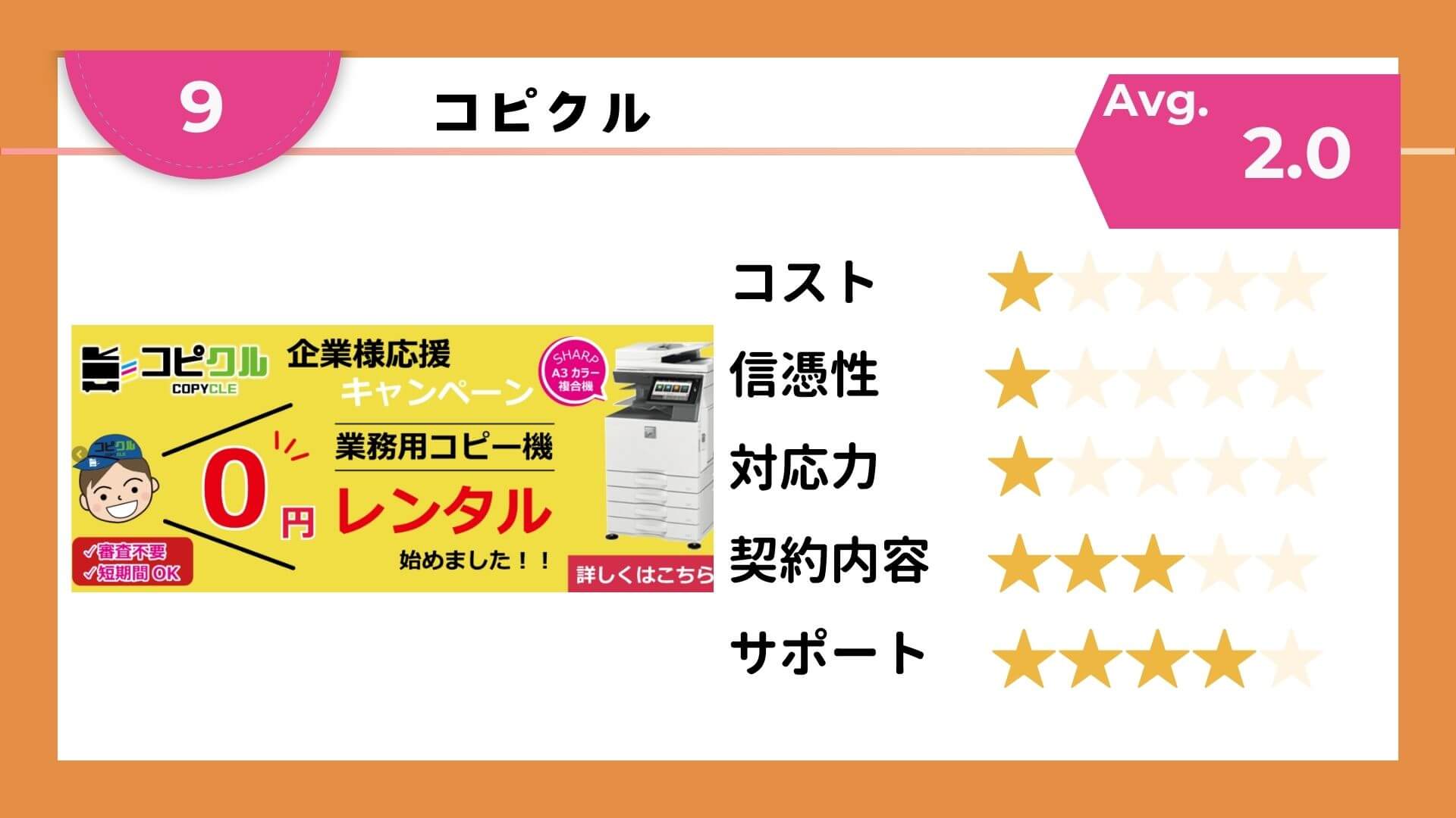 【コピー機レンタルサービス 第9位】コピクル
